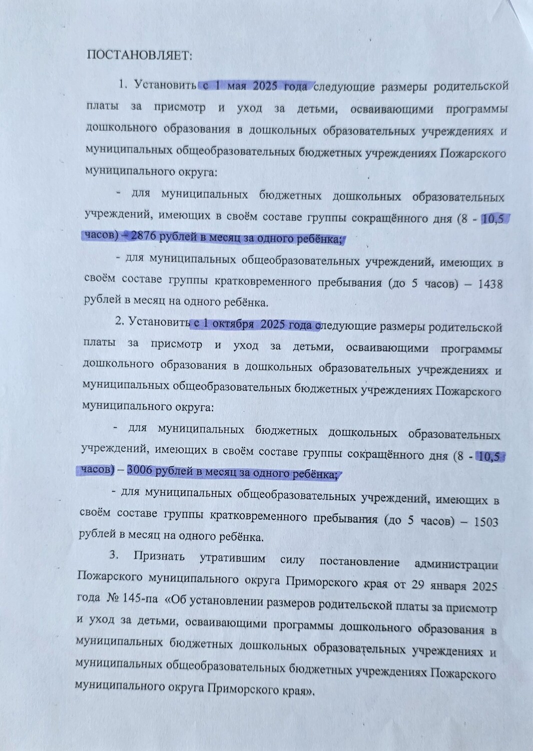 С 01 мая и 01 октября 2025 года увеличивается размер родительской платы!!!
